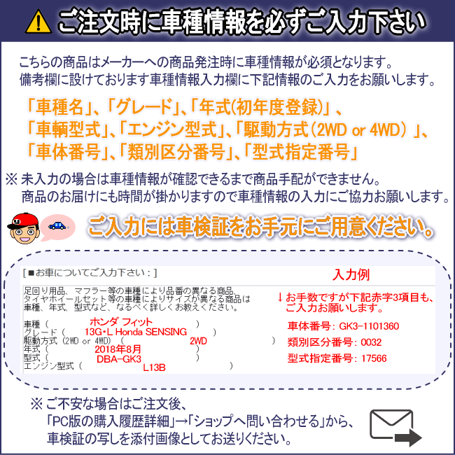 【注意事項】御注文をいただける際には装着可否もございますので装着予定の車種、グレード、年式、型式、をご記入下さいませ。